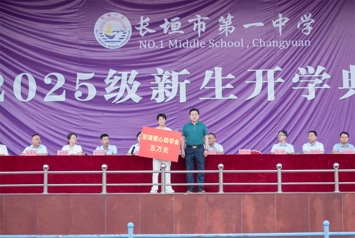 9月1日,宏瑞卓越奖学金发放暨长垣一中2025级新生开学典礼在学校东操场隆重举行。